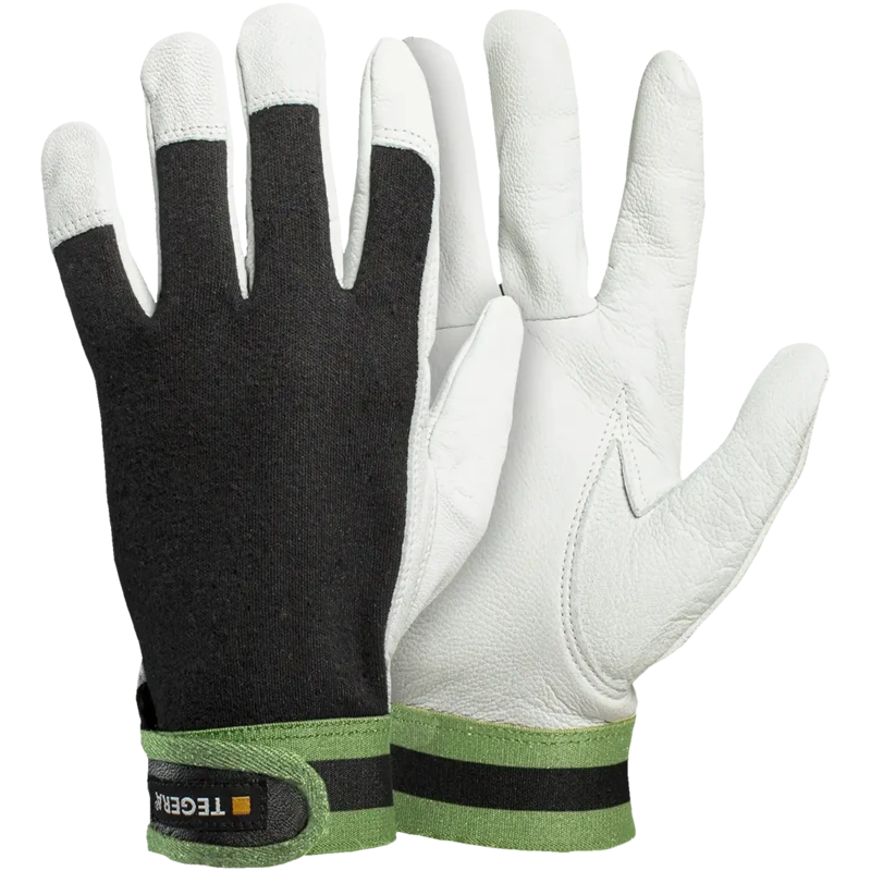 Tässä pukin pintanahasta ja puuvillasta/polyesteristä valmistetussa edullisessa peruskäsineessä on vahvikkeet sormenpäissä, ja se soveltuu monenlaisiin asennustöihin. Tarrakiinnitys pitää käsineen paikallaan ja torjuu likaa ja pölyä.
